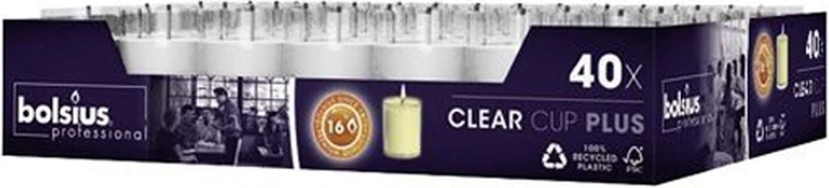 40 Stuks Bolsius ReLight Kaars In Transparante Houder 55/42 (16 Uur)