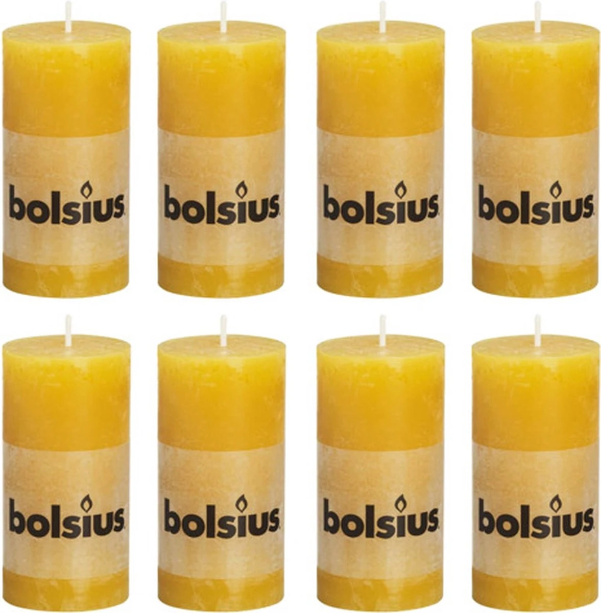 8 Stuks Bolsius Oker Geel Rustiek Stompkaarsen 100/50 (25 Uur)
