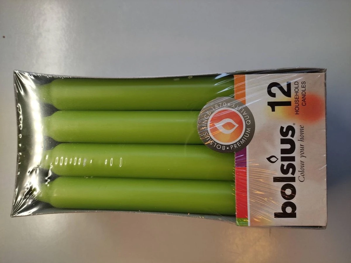 Bolsius Diner Kaarsen – 12 Stuks – Dinerkaarsen – 18cm – Appeltjesgroen – Groen – 6 Uur