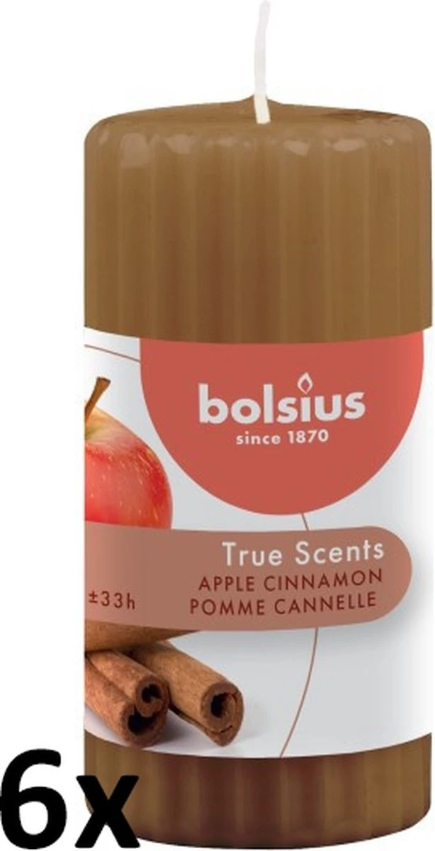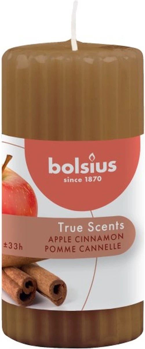 Haal een warme en knusse sfeer in huis met deze naar appel en kaneel ruikende geribbelde True Scents stompkaarsen van Bolsius!