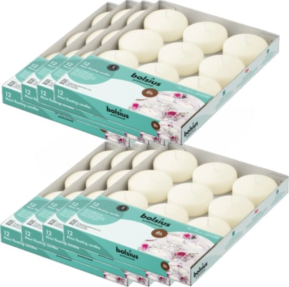 Met het natuurlijke licht van kaarsen zorg je voor warmte in huis en maak je het gezellig. De Bolsius Maxi Drijfkaars in wit is 3 cm hoog, heeft een diameter van 7.7 cm en brandt wel 8 uur. Elke Bolsius kaars is gemaakt met vakmanschap en oog voor kwaliteit. De kaarsen roeten niet en er ontstaat geen walm of rook wanneer je de kaarsen brandt. Zo geniet je langdurig van sfeervol kaarslicht in huis!