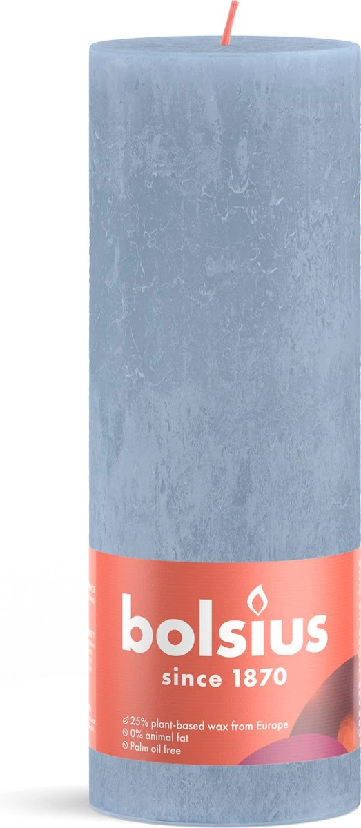 Maak van elk moment een bijzonder moment! Met het natuurlijke licht van kaarsen zorg je voor warmte en sfeer in huis en maak je het gezellig. De Bolsius Rustieke Stompkaars in de ijsblauwe kleur Sky Blue is 19cm hoog en brandt wel 85 uur. Gemaakt met liefde voor mens en planeet, zonder palmolie en met natuurlijke vegan wax. In de Bolsius collectie vind je rustieke kaarsen in verschillende formaten en in 21 trendy kleuren, die je goed met elkaar kunt combineren.