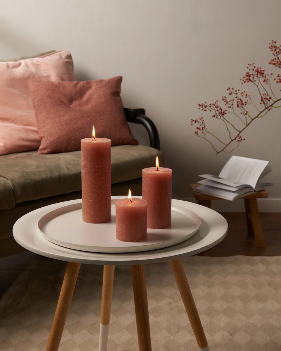 Bolsius rustieke kwaliteitskaarsen zijn er in verschillende formaten en in 21 verschillende kleuren. De collectie is geïnspireerd door de texturen en kleuren uit de natuur. Gemaakt met liefde voor mens en planeet: zonder palmolie, maar mét vegan wax van olijf-, zonnebloem- of raapzaadolie. De collectie rustieke kaarsen wordt elk seizoen aangevuld met de nieuwste trendkleuren zodat je interieur altijd up-to-date blijft.