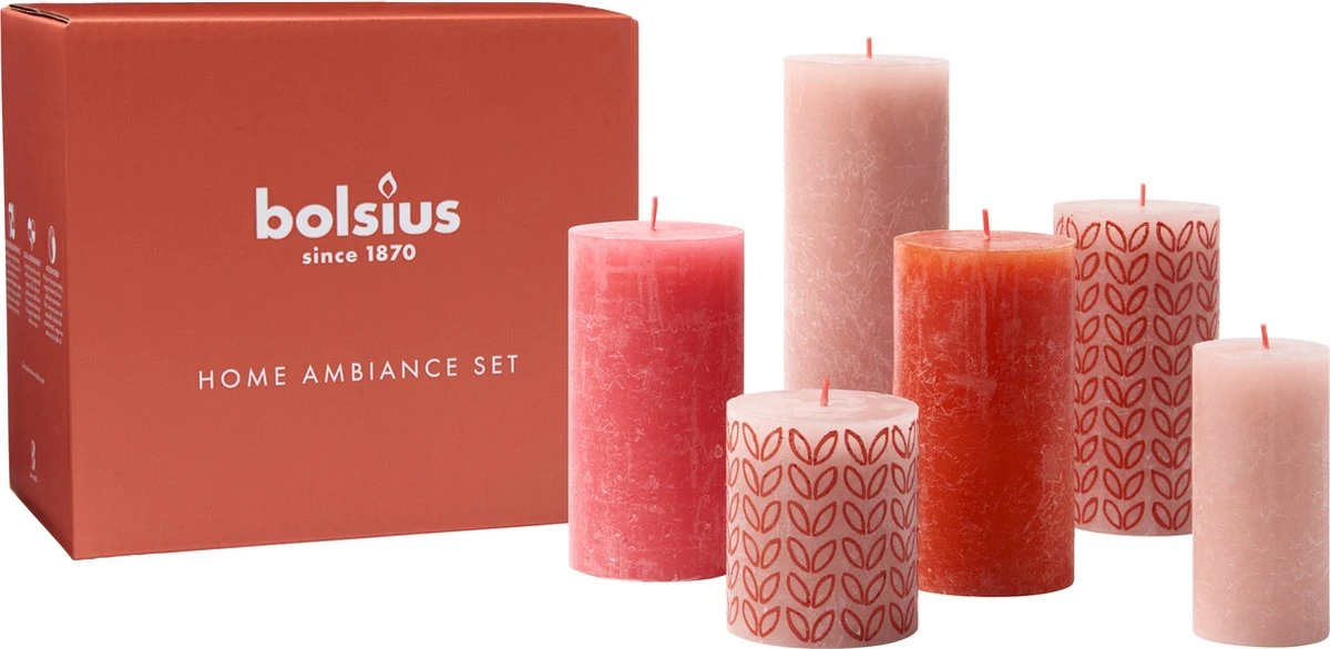 Maak van elk moment een bijzonder moment! Met het natuurlijke licht van kaarsen zorg je voor warmte en sfeer in huis en maak je het gezellig. Met deze Bolsius kaarsenset in het thema ‘Poppy Sunset‘ haal je de zachtroze gloed van een zonsondergang in huis. Trendy kaarsen in verschillende tinten, hoogtes en prints. Voor wie houdt van een kleurrijk statement op de (salon)tafel of dressoir!