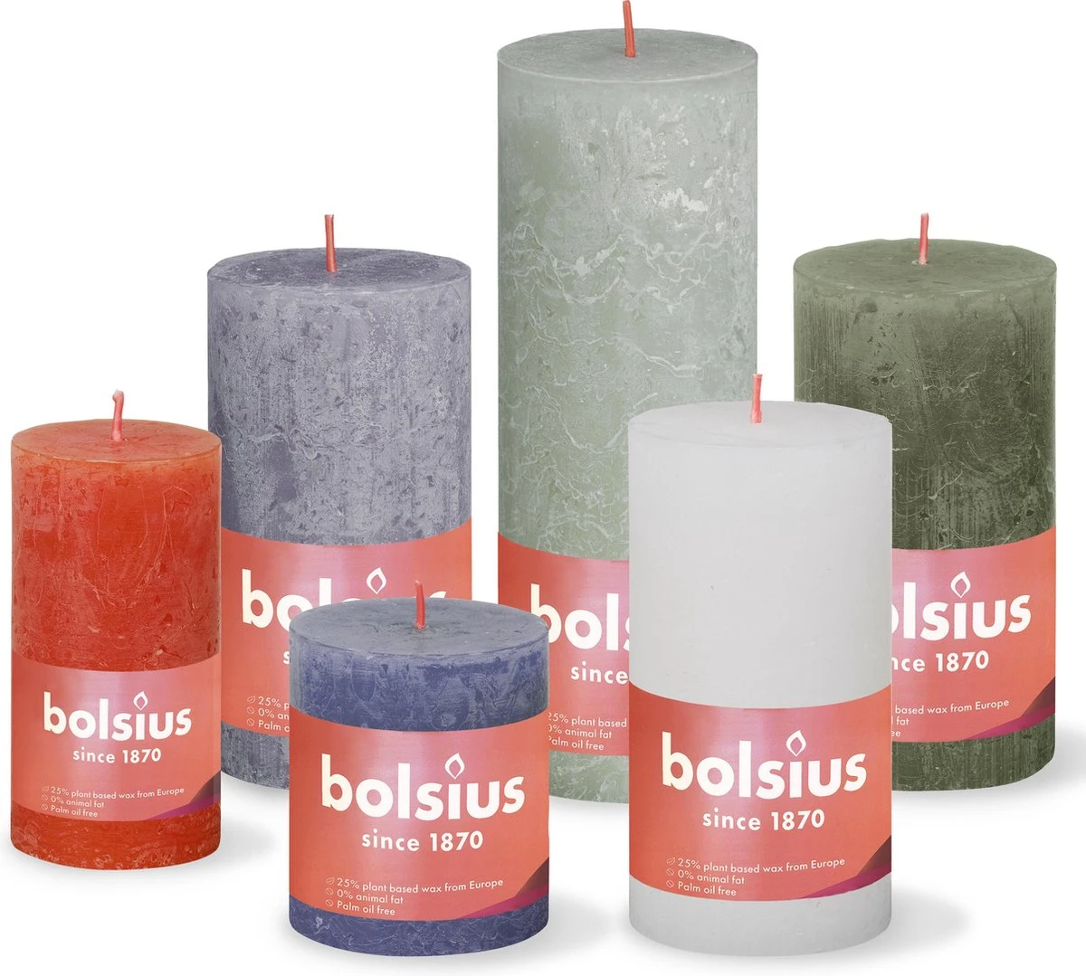 Bolsius maakt kwaliteitskaarsen sinds 1870 en gebruikt alleen de beste grondstoffen. Elke Bolsius kaars is gemaakt met vakmanschap en duurzamer geproduceerd in Europa. Hierdoor roeten de kaarsen niet en ontstaat er geen walm of rook wanneer je de kaarsen brandt. De rustieke kaarsen van Bolsius houden hun vorm en het katoenen lontje, ook wel kaarsenpit genoemd, is zo gevlochten dat je altijd een stabiele vlam hebt.