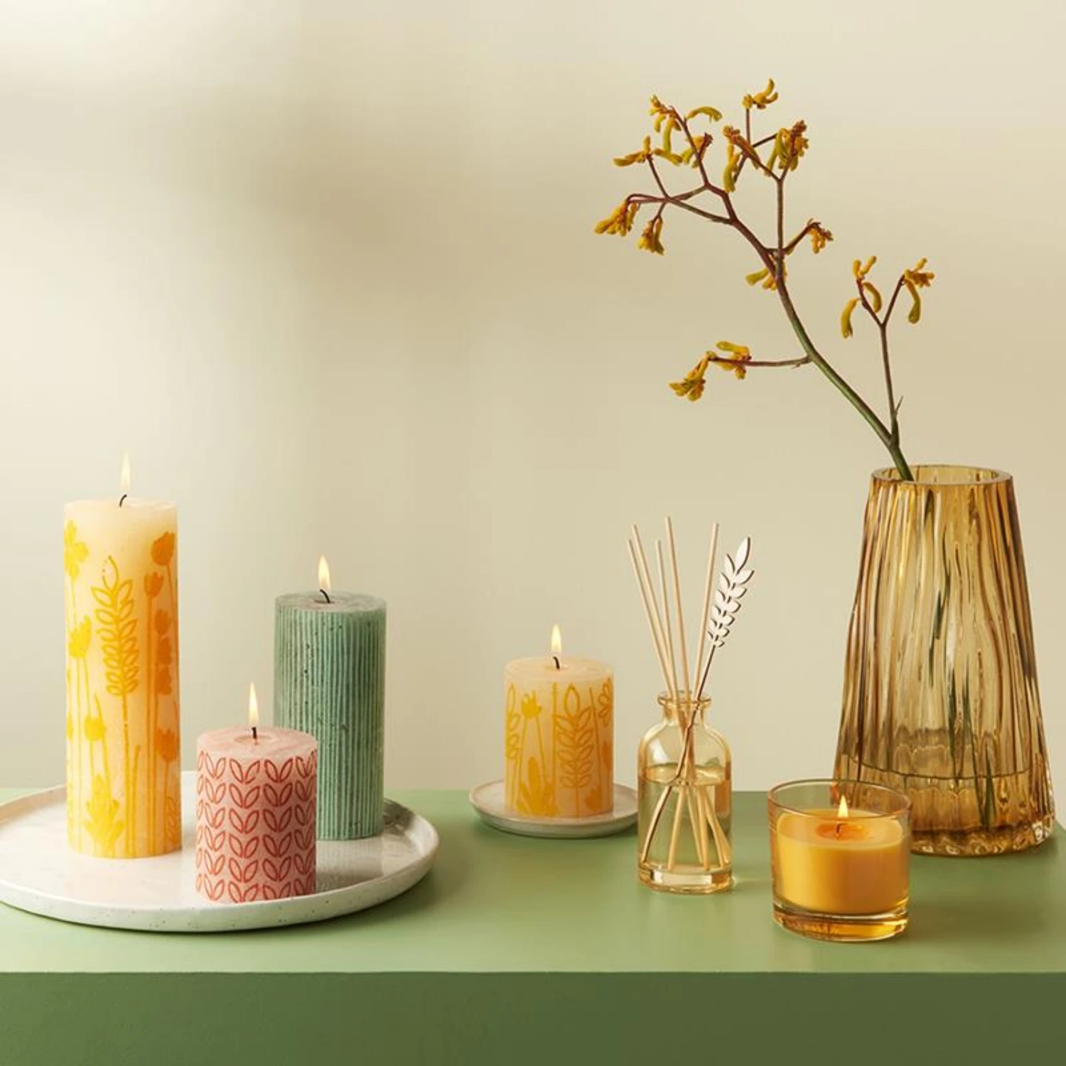 Bolsius weet hoe jij sfeer in huis haalt! Hun kaarsen brengen al meer dan een eeuw sfeer in huizen door heel Europa. Deze rustieke Bolsius stompkaars in de kleur botergeel met print is 13 cm hoog, met een diameter van 6,8 cm. Daarmee heeft hij tot wel 60 branduren! Deze kaars kan bovendien op elk moment gebruikt worden: ’s avonds op de bank, buiten in de tuin, of tijdens het diner!