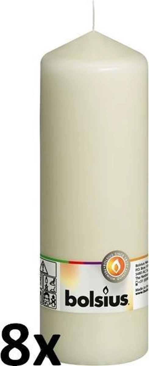 8 stuks ivoor Bolsius stompkaarsen 200/70 voordeel verpakking, voor gezellige en sfeervolle avonden in uw woning of tuin. Deze Bolsius kaarsen branden perfect op, hebben een lange brandduur en roeten niet. Sfeervolle stompkaars in ivoor kleur van het merk Bolsius. Afmeting 20 cm hoog en een diameter van 7 cm. Hoeveelheid: 8 stuks. Kleur: ivoor. De kaars heeft een brandtijd van maar liefst 72 uur. Bestel aantal 1 = 8 stuks