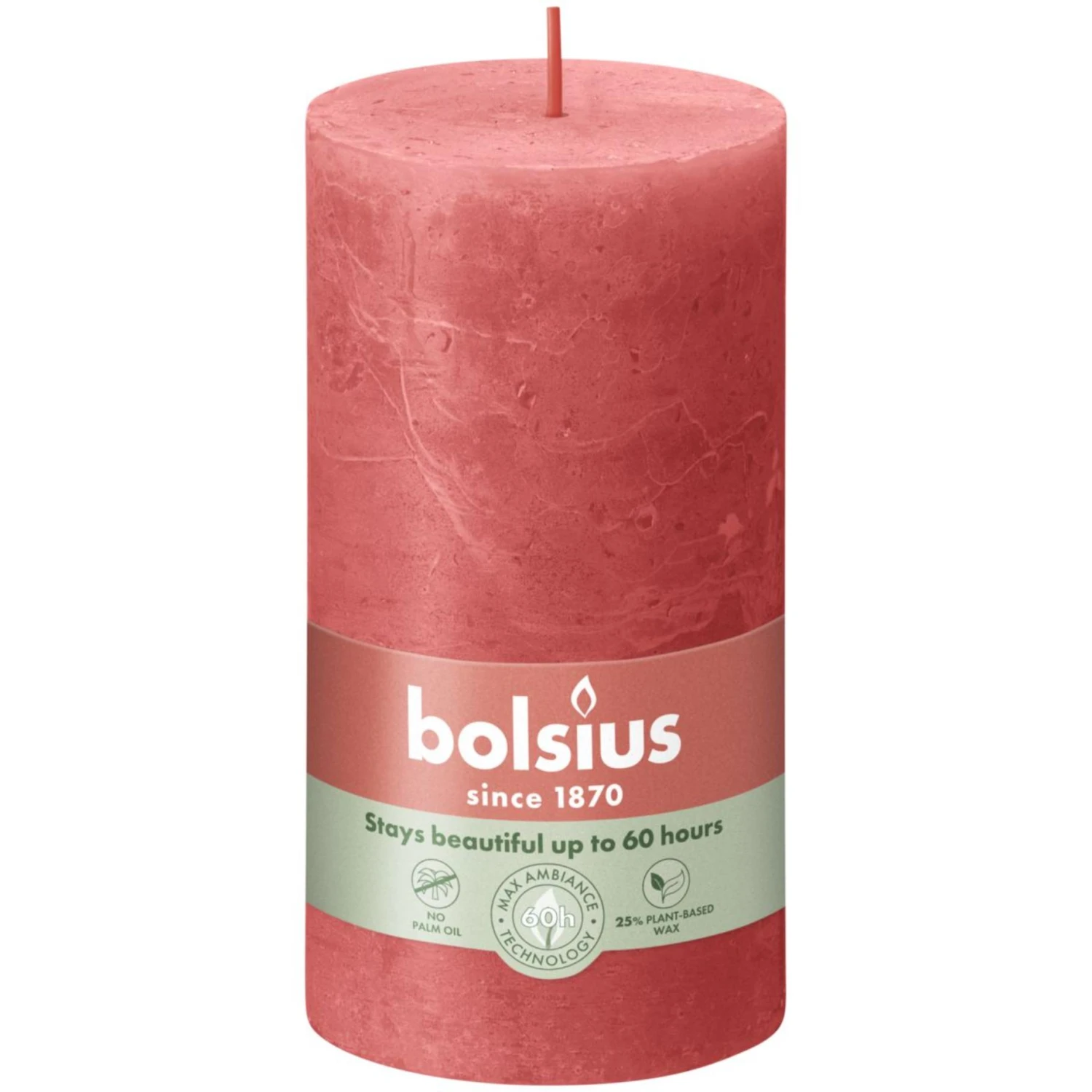 Deze klassieke rustieke Bolsius kaars in de kleur Blossom Pink heeft een afmeting van 13 x 6,8 cm. De kaars zorgt voor een gezellige en warme sfeer in de woonkamer tijdens een avondje bankhangen of een ontspannende sfeer in de badkamer tijdens het badderen. De kaars brand na ca. 60 uren op en roet niet. Combineer de kaars met andere kleuren of formaten van kaarsen en plaats ze op een plateau voor een mooi effect.