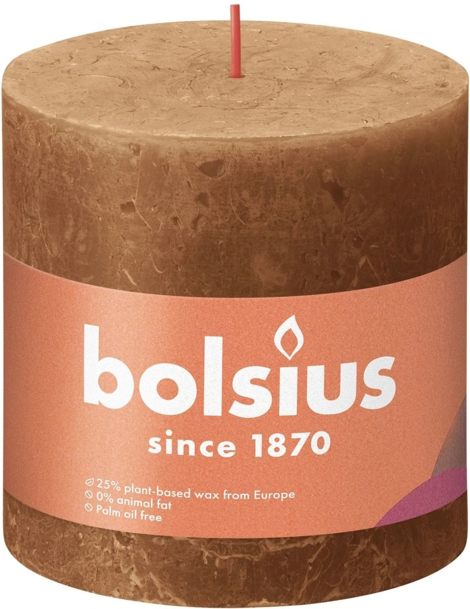 Deze Bolsius Rustieke Kaars in de kleur Spice Brown is gemaakt met liefde voor mens en planeet. Dus zonder palmolie en dierlijk vet maar met plantaardige wax. De kaars bestaat voor 25% uit plantaardige wax afkomstig uit Europa.