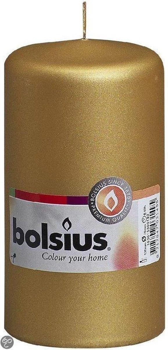 Productnaam: Stompkaars 130/70 Goud Merk: Bolsius Maat: 130/70 Branduren: 43 Kleur: goud Goud & Zilver is de trend voor deze kerst en winterdagen!