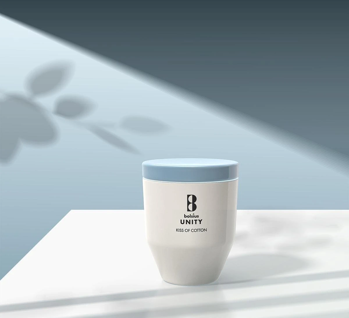 Bolsius Unity combineert onweerstaanbare geurbeleving met strak design. Geïnspireerd door de natuur brengen de lichte frisse geuren en zachte kleuren in de premium collectie Pure Serenity balans en energie in je interieur. Een unieke collectie ontwikkeld in samenwerking met Dutch designer Lex Pott. Duurzamer gemaakt met natuurlijke extracten, zonder palmolie of dierlijk vet.